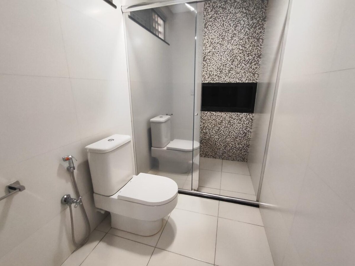 Espaço privativo, para estadias confortáveis e práticas. Conta com 1 suíte , equipada com: Cama de casal padrão com roupa de cama; Ar-condicionado; TV; 1Banheiro privativo. A acomodação é dividida em dois ambientes: Cozinha independente, equipada com os itens básicos para preparo de refeições. *Nao permite VISITAS; CRIANÇAS. *Não tem GARAGEM. *Check-In das 15h até as 22h,APENAS. *Wi-fi;o sinal está oscilando. Segurança: Envio do documento de identidade com foto dos hóspedes é obrigatório