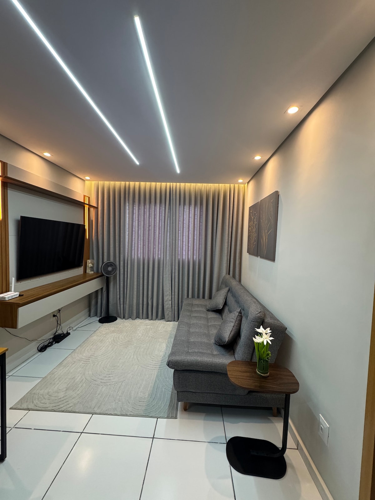 Apto completo, 02 quartos (sendo 01 suíte), sala, 01 banheiro social, cozinha (contém, máquina lava e seca, fogão, geladeira, liquidificador, cafeteira, batedeira, panelas, louça, talheres, ferro elétrico). Condomínio com piscina, quadra, 2 parques infantis, 2 salões de festa, 1 academia e 1 vaga de garagem. Próximo a 2 shoppings e 2 supermercados. Condomínio tranquilo, com segurança 24hs. Serviços inclusos: Wi-Fi, gás encanado, água, energia, chuveiro elétrico e ar-condicionado na suíte.