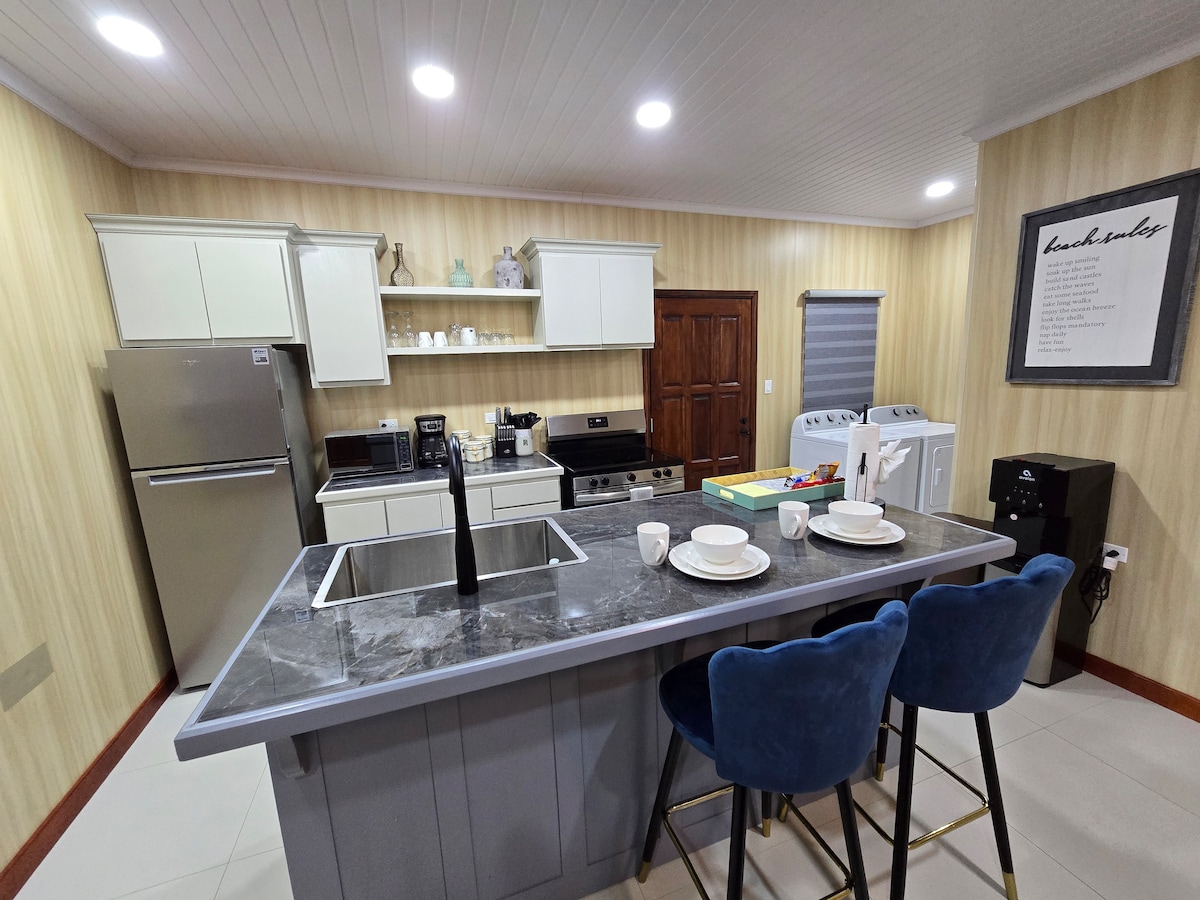 Looking for a private get away on Caye Caulker. My private 1 bed home is located just on the outside of the village next to the municipal airport. You will be welcome by beach view, sea breeze and the local native trees on the island. The main village is a 10 minute walk away. My home is fully equipped with all appliances, a king bed, AC, T.V, Wifi and not to mention a washer and dryer. Come experience Belize while maintaining all modern amenities.