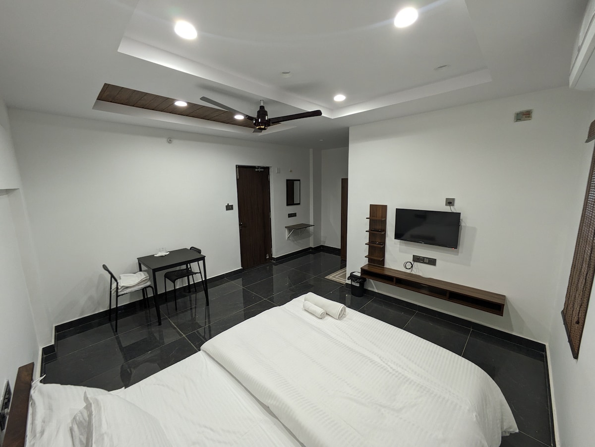 ¡Habitación de lujo cálida, espaciosa y elegante totalmente amueblada en el corazón de Kadubeesanahalli, cerca de New Horizon College y Outer Ring Road! Todas las habitaciones son ultracómodas y cuentan con baño privado, interiores modernos y mucho espacio para trabajar y relajarse. También tendrás acceso a una acogedora terraza, perfecta para relajarte por la noche o descansar los fines de semana.