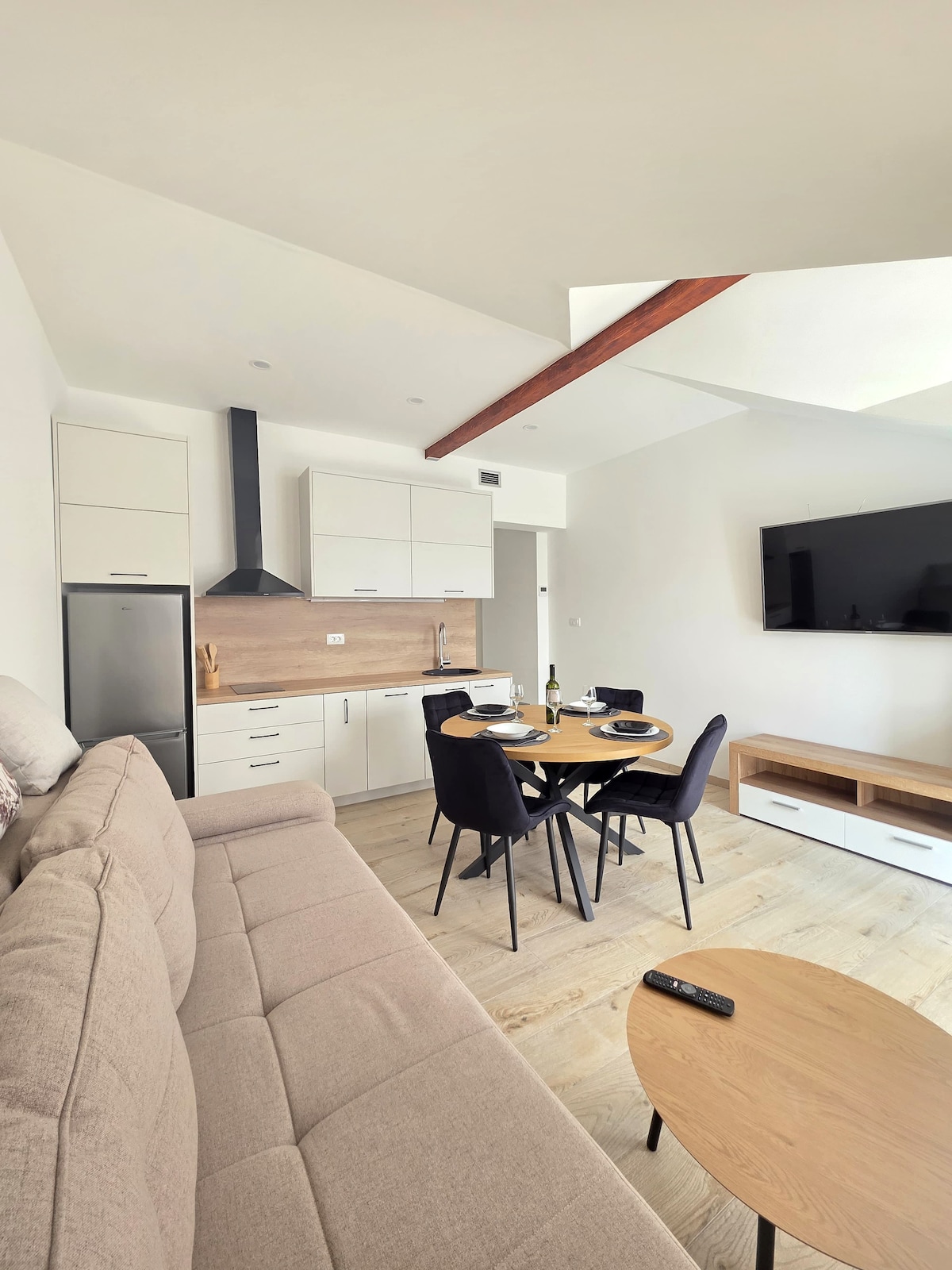 Cómodo y moderno loft en una ubicación perfecta, a solo unos pasos de las murallas de la ciudad y la puerta de Ploče, con las vistas más increíbles del casco antiguo, el mar y la isla de Lokrum. Consta de 2 dormitorios dobles, baño, aseo, cocina totalmente equipada, oficina y espacioso comedor y sala de estar con terraza con vistas a los tejados mágicos y al puerto viejo de Dubrovnik. Situado justo encima del casco antiguo en la zona de Ploče, todas las atracciones principales y playas están a poca distancia a pie.