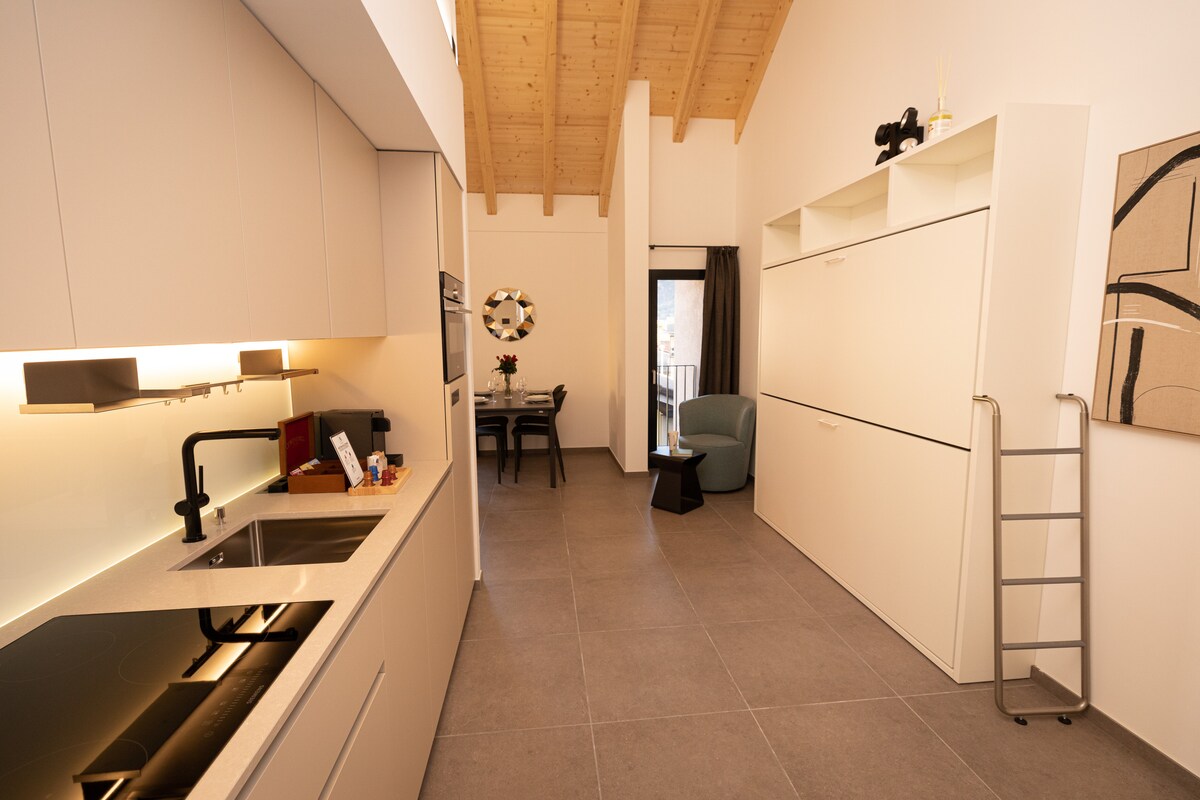 El amplio apartamento de 2 habitaciones «Appartamento Amore» es nuestro apartamento para parejas. La cama doble invita a pasar horas acurrucados frente a la chimenea y el diseño abierto es ideal para dos personas. El apartamento recién reformado se encuentra en el primer piso de una antigua casa tradicional ticinesa con patio interior para disfrutar y hacer barbacoas. Es muy fácil llegar en coche o en transporte público y está perfectamente situado como punto de partida para todo tipo de excursiones.
