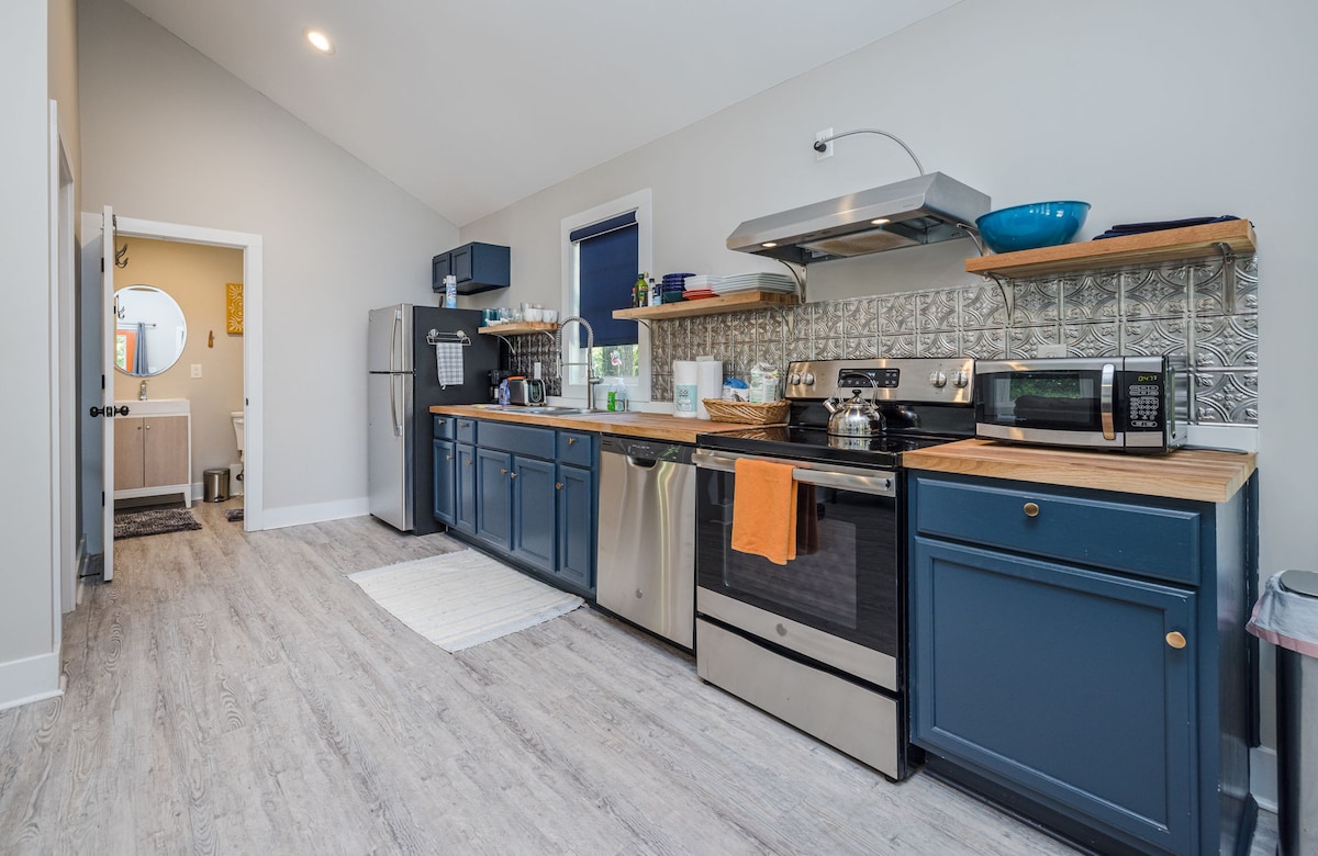 Ubicada en la hermosa y dinámica zona histórica de Summerville, en el área metropolitana de Augusta, esta casa de campo aislada está escondida detrás de nuestra casa de estilo artesanal de principios de siglo. Este espacio tranquilo ofrece una zona de estar-dormitorio combinada de estilo estudio que incluye una cómoda cama de tamaño completo y un sofá cama doble. Encontrarás un baño completo, cocina comedor con un horno de aire compacto y versátil, porche privado con parrilla de gas, wifi y televisor inteligente de 55 pulgadas, aparcamiento en la calle, además de una plaza de aparcamiento asignada fuera de la calle.