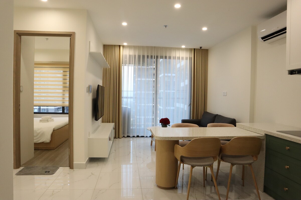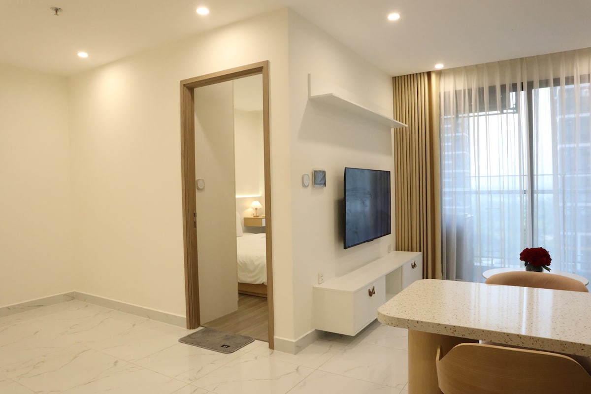 Emerald Suite by Sweet Home Perfectly located opposite Aeon Mall and minutes from VSIP 1, this suite is designed for professionals and golfers seeking balance. The Experience: After a busy day, recharge in our Free Sauna and Infinity Pool. The apartment offers a quiet workspace, high-speed Wifi, and a premium King bed for deep sleep. Highlights: - Dining & Shopping at Aeon just steps away. - Full Kitchen & Washer for long stays. - Secure & Private. Your ideal base for work & relaxation.