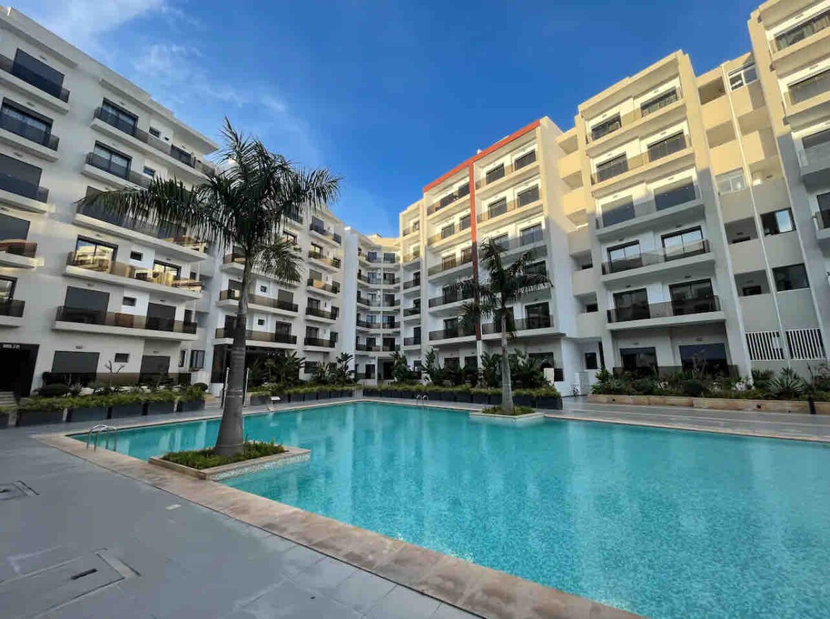 Importante: por cada reserva le ofrezco el desayuno en @poundsfitkitchen el mejor restaurante de la ciudad. Muy bonito apartamento nuevo en una hermosa residencia tranquila el apartamento está solo en el piso de arriba con vistas a la piscina . Ideal para viajeros y familias que deseen disfrutar de las hermosas playas de mohamadia. Encontrarán la felicidad con el acceso a las piscinas y a las diferentes zonas de juegos para niños, así como a las pistas de tenis y fútbol. El acceso a la playa está a 5 minutos a pie