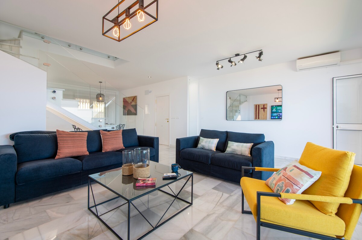 Hermoso ático con una gran terraza moderna y vistas al mar virgen con vistas al mar Mediterráneo y a las montañas. Desde la terraza se puede disfrutar de la puesta de sol perfecta. Excelente ubicación (a solo 20 minutos del aeropuerto) en el complejo vacacional de Benalbeach junto a la playa. Toda la decoración y el mobiliario se han preparado con buen gusto pensando en el disfrute de nuestros huéspedes y es ideal para pasar tus mejores vacaciones de verano, así como la temporada de invierno en la zona costera de Benalmádena.