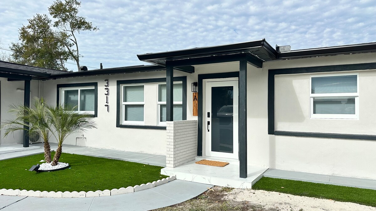 Disfrute de una experiencia con estilo en esta moderna casa de huéspedes privada, ubicada en el centro de la hermosa ciudad de Tampa, en el barrio de Seminole Heights. Cerca del centro de la ciudad, del aeropuerto, de los estadios deportivos, de restaurantes, de bares, de cervecerías, de playas y de lugares de interés. Atracciones cercanas: Aeropuerto de Tampa - 8,3 millas Estadio Raymond James - 4,5 millas Benchmark Arena - 5,7 millas Puerto de Tampa / Terminal de cruceros - 6,3 millas Anfiteatro Midflorida - 10 millas Zoológico de Tampa - 0.5 millas
