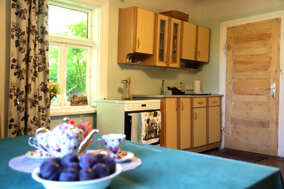 Cuando viajas con familiares o amigos, la oportunidad de descansar en el silencio rural con los servicios habituales. Puedes cocinar una comida en la cocina o usar una parrilla al aire libre. Un cómodo refugio en el vasto jardín de la casa también está disponible para recreación y pequeñas celebraciones. Durante la temporada, la oportunidad de disfrutar de las frutas y verduras disponibles en el jardín.