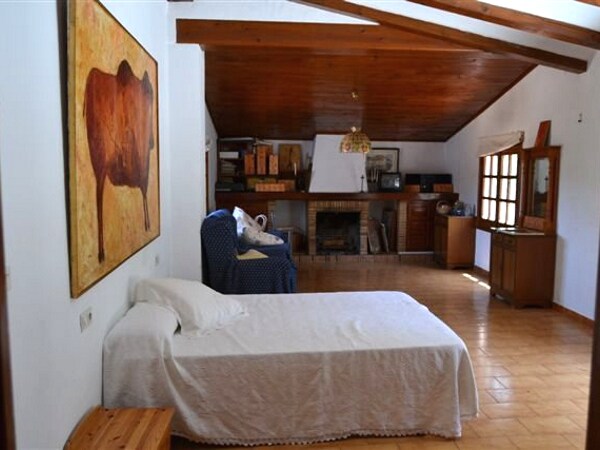 En este alojamiento se respira tranquilidad: ¡relájate con toda la familia! Un chalet con una amplia parcela frondosa que ofrece mucha privacidad, piscina y barbacoa propia. Una terraza con muebles de exterior ideal para disfrutar de las tardes de verano. Y su chimenea en el salón de las tardes mas frías del invierno. La vivienda principal cuenta con dos dormitorios, baño, salón y cocina y además tiene un dormitorio ensuite totalmente independiente. Parcela cerrada con zona de aparcamiento