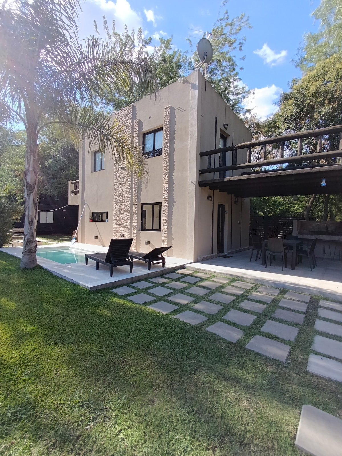 Divertite con toda la familia en este alojamiento con estilo. Rodeado de verde y súper tranquilo, relajate en la pileta y disfrutá de un asado, este lugar tiene todo para que tu escapada sea perfecta e inolvidable. Con un diseño exquisito, cocina super equipada y un parque muy bien cuidado, este espacio invita a vivir momentos especiales en familia o grupos de amigos.