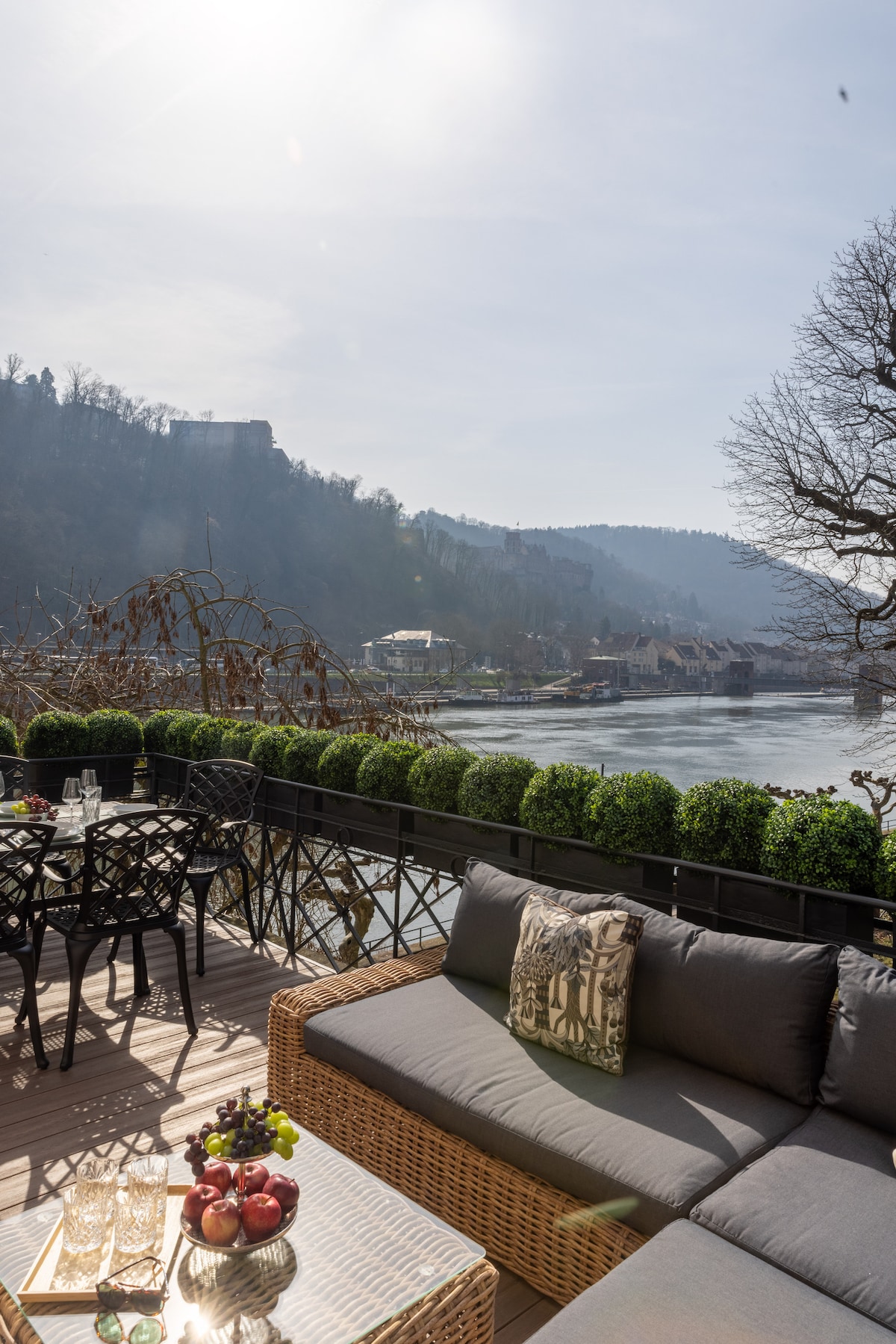 Gut klimatisierte Erdgeschosswohnung, zentral in der Heidelberger Altstadt mit eigenem Eingang über den Innenhof. Wohn- und Schlafbereich (180 cm breites Boxspringbett), Kaffee, Tee und Wasser stehen wie ein ausgestattetes Badezimmer zur Verfügung. Eine Küche ist nicht vorhanden, jedoch gibt es einen Minikühlschrank. Die überdachte Terrasse zur Mitbenutzung mit Sitzgelegenheiten und Fitness-Geräten rundet das Angebot ab. WLan mit 500 Mbit/s verfügbar.