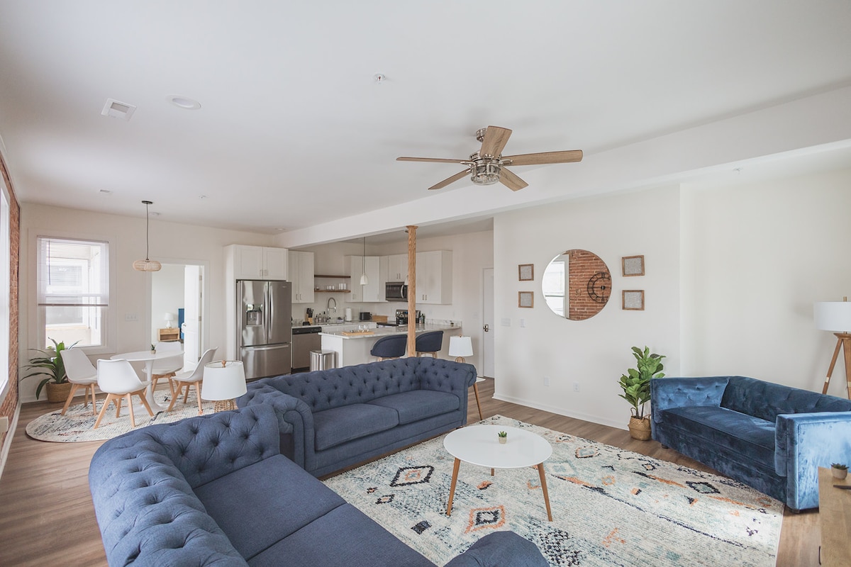 This stylish place to stay is perfect for group trips. You and your group will have access to over 2000sq ft of living space in our spacious apartment located in the heart of Martinsburg's downtown historic district. The amenities include a full-sized kitchen, comfortable sectional sofa, and two ample sized bedrooms with king-sized beds. There are restaurants and shops within walking distant in this centrally located apartment. Enjoy your stay at the Charm of Downtown, your "Home Away from Home"