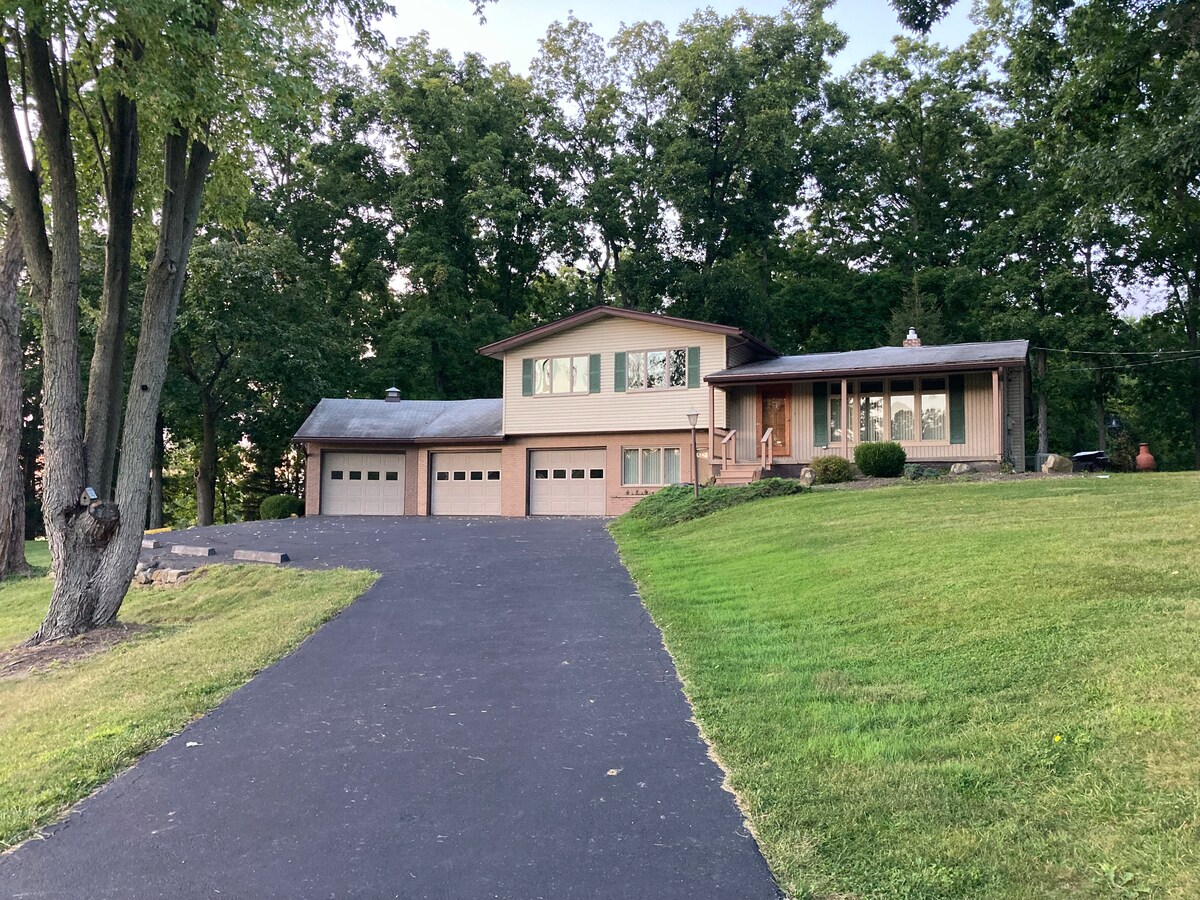 Our Rustic Frank Lloyd Wright inspired contemporary home is located on 10 wooded acres amidst nature's beauty. There are trails in the woods for hiking & cross country skiing. The floor to ceiling walls of glass in the apartment bring the outside in and the private deck provides additional spectacular views of the woods. When not enjoying the wonders of the outdoors, take advantage of our included streaming services. We have a brand new heating and cooling system with 24/7 service!