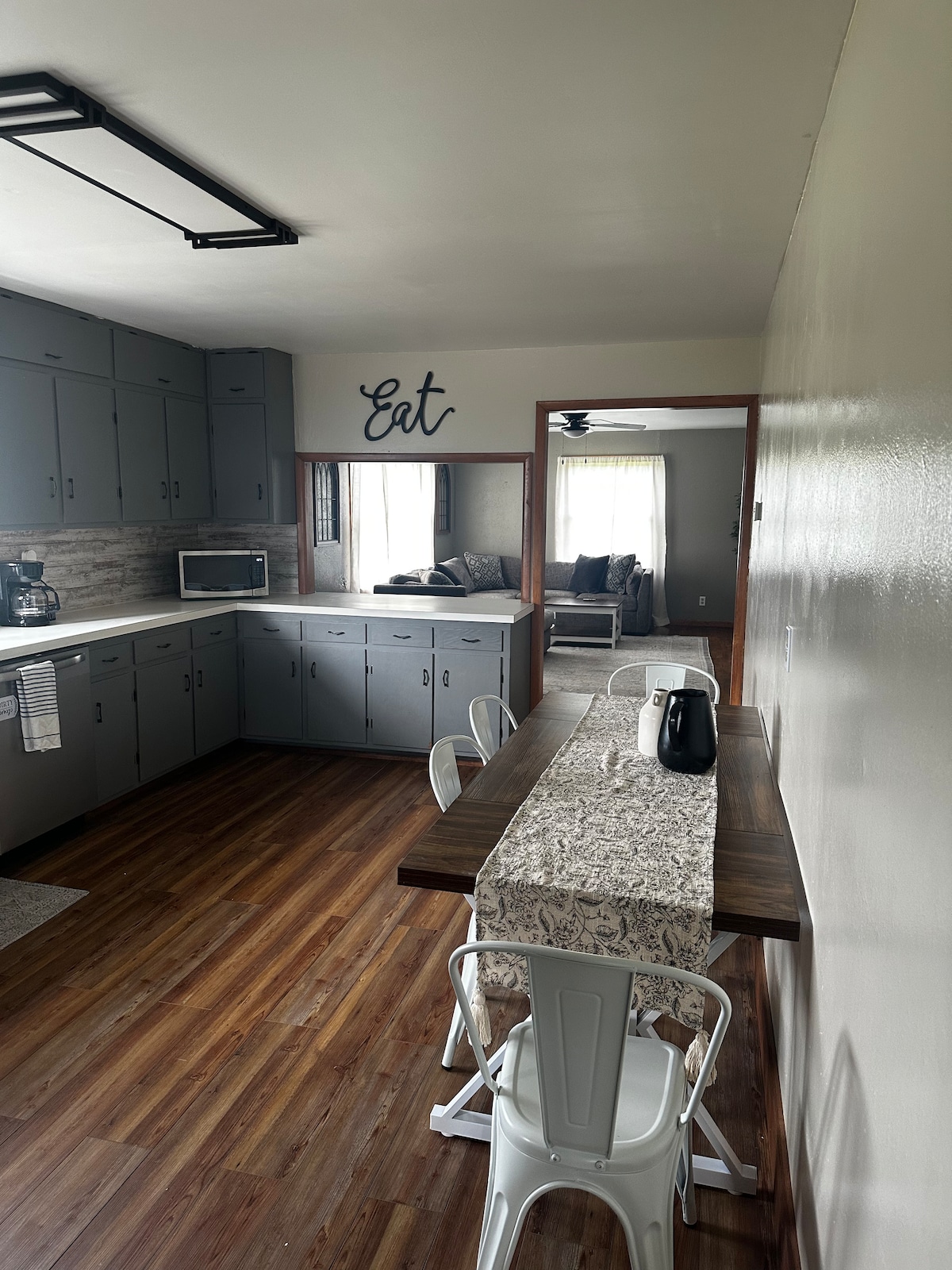 Forget your worries in this spacious and serene home located just a quick drive from Hamilton’s quaint downtown. Whether you’re visiting family, shopping at Missouri Star Quilt Company, or attending a wedding at The Pearl, you’re sure to find everything you need for a wonderful stay. This newly remodeled home features a primary queen bedroom, a second bedroom with two twin beds, a spacious bathroom, fully stocked kitchen, and ample living and dining space. You’ll feel right at home!
