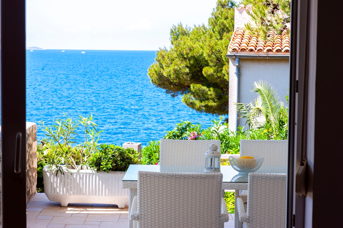 Departamento de dos dormitorios recién renovado con una hermosa vista al mar, ¡perfecto para cuatro! ¡El departamento está totalmente equipado y cerca de todo lo que necesitas! ¡Justo al otro lado del puente peatonal desde el casco antiguo!