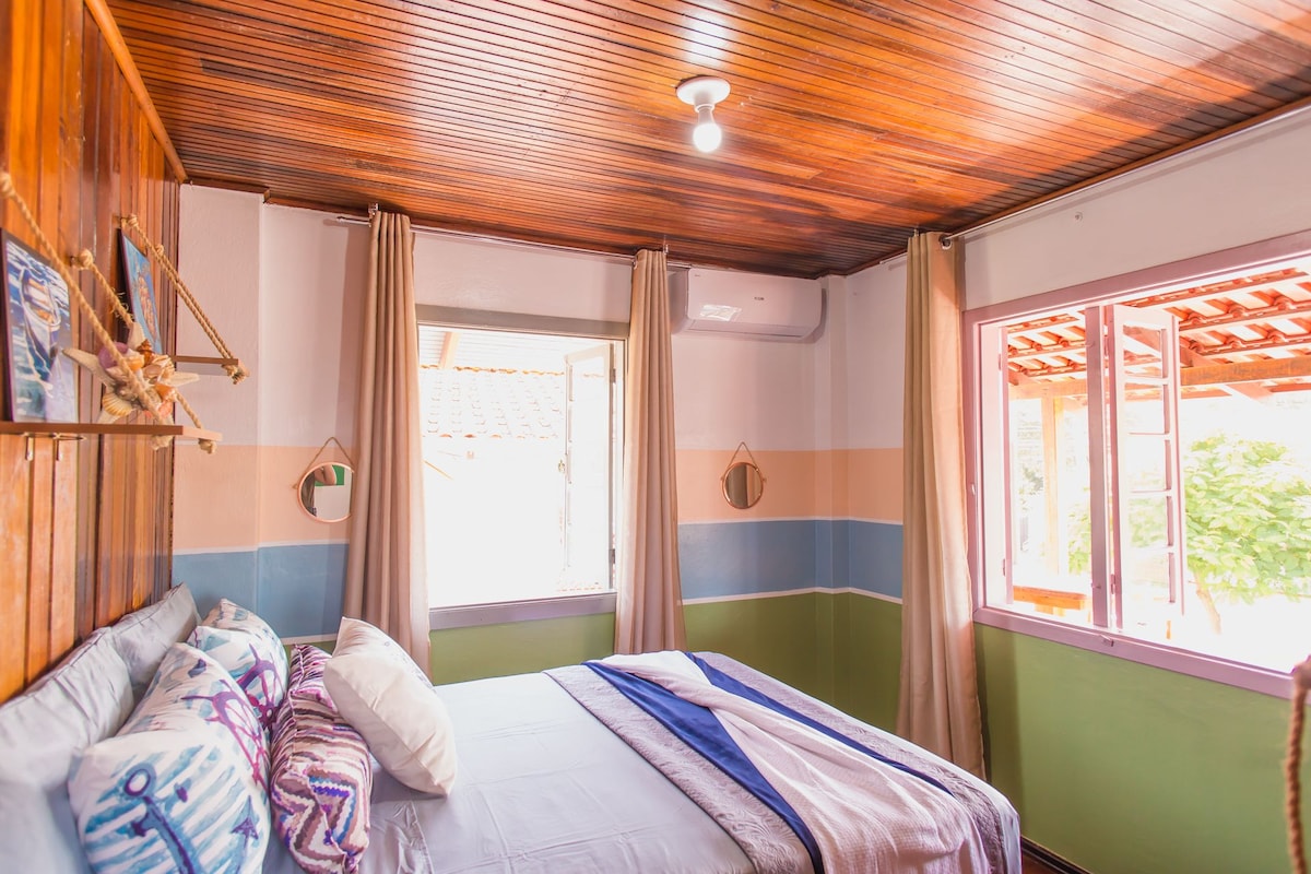 En la cabaña Pukuá podrás dormir contando las estrellas, porque encima de la cama hay un tragaluz. Además de la habitación con espacio para la oficina en casa, podrá relajarse en el sofá (o hamaca) en una sala súper acogedora. ¿Juegos de mesa, Netflix, Prime, Disney y Star GRATIS? ¡Los tenemos! La cocina está equipada con todo lo necesario. Nuestra cabaña mezcla lo rústico con la comodidad y cada detalle ha sido pensado para que su estancia sea lo más agradable posible. Baño espacioso y privado.