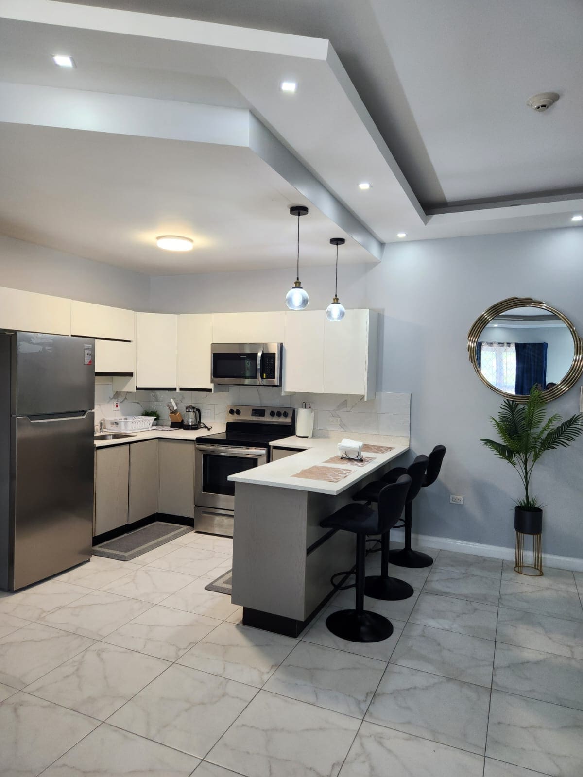 Disfruta de este increíble refugio de Kingston, a minutos del centro comercial de 3 niveles de Sovereign Plaza con tiendas, restaurantes, farmacia y cine. Este apartamento es ideal para vacaciones, trabajo a distancia o emergencia familiar, a 5 minutos del famoso Museo Bob Marley y a 10 minutos de la mundialmente famosa Devon House. Combate el calor con total comodidad de aire acondicionado y mantente conectado con nuestro wifi superrápido gratuito. ¡Reserva o haz una consulta ahora!