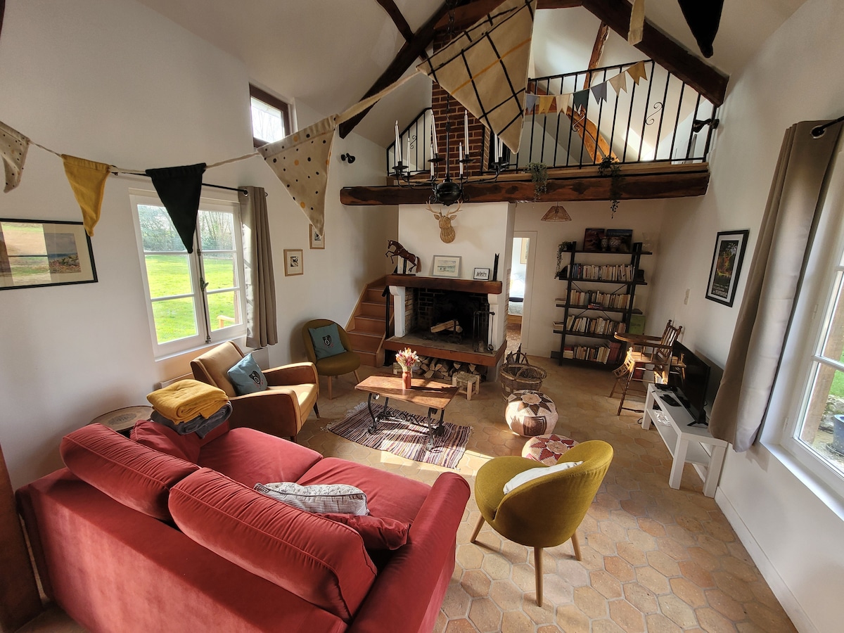 Bonita casa encantadora completamente amueblada (antiguo granero), en el corazón de Normandía, 3épis Gite de France. Habitaciones espaciosas, buenas instalaciones en un ambiente verdaderamente exitoso, que combinan las viejas (vigas expuestas, puertas antiguas) y contemporáneas (escaleras de diseño). Durante el verano y las vacaciones escolares, reservando solo por una semana.