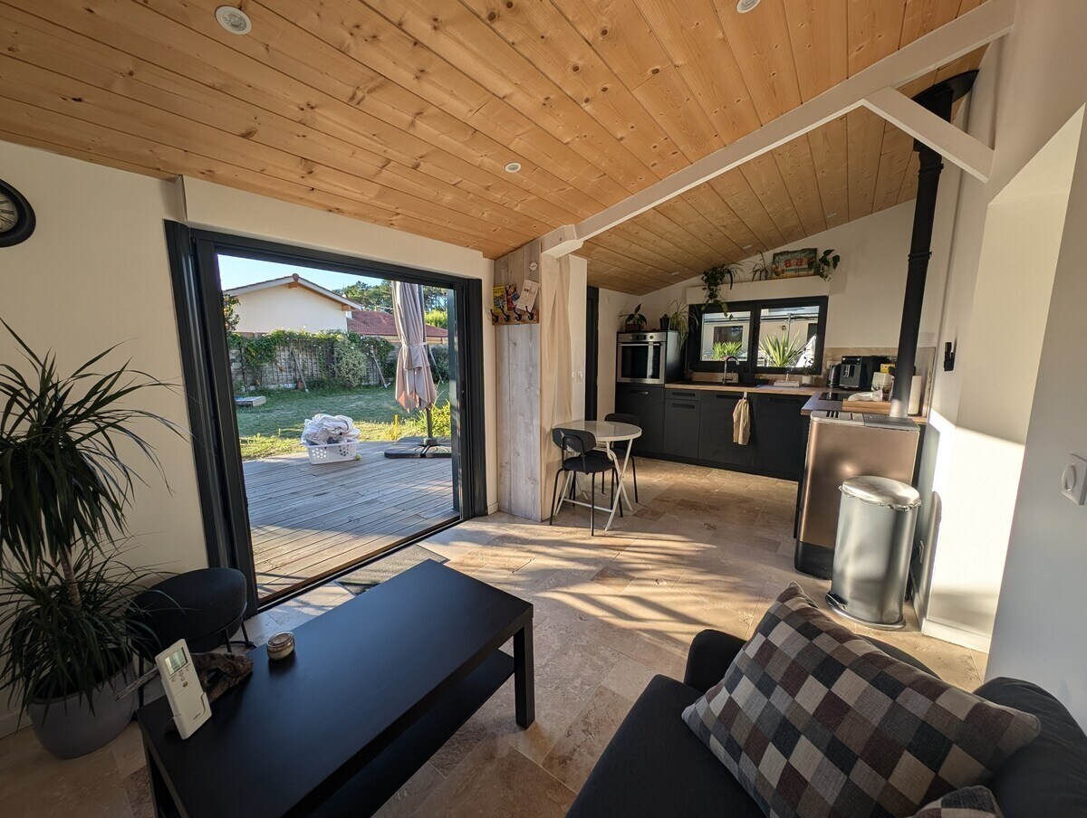 Casa muy luminosa de 135 m² situada en un terreno en el borde del bosque. A 5 minutos del océano y de la ciudad en coche, con la tranquilidad del campo podrá descansar y disfrutar plenamente de sus vacaciones gracias a un espacio exterior que permite veladas de barbacoa y recepciones con amigos. El gran salón comedor cocina abierto al exterior le ofrecerá desde el despertar un panorama propicio al cambio de aires y un verdadero ambiente de vacaciones.