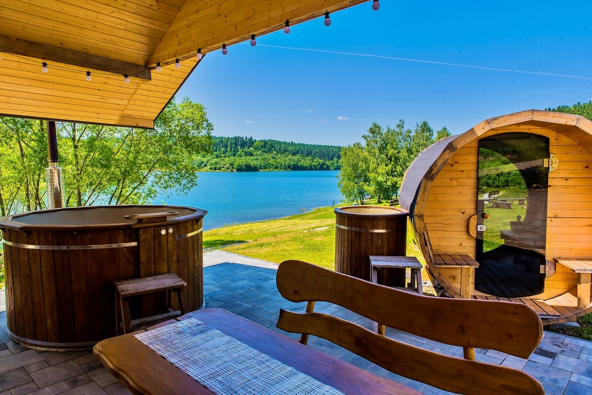 Una moderna casa loft abierta todo el año con una zona de SPA privada en el corazón de las montañas Bieszczady. Sauna, jacuzzi para dos personas y jacuzzi en la terraza. Dos dormitorios, aire acondicionado, cocina totalmente equipada, sala de estar con sofá y TV, baño con lavadora. En el exterior, hay un fogón, un patio y tumbonas. Ropa de cama, toallas, albornoces y cápsulas de café incluidas. ¡Aparcamiento y un ambiente inolvidable en el paquete! Descanso y tranquilidad. Para el uso de la bañera, se aplica una tarifa adicional de +150zł/estancia.