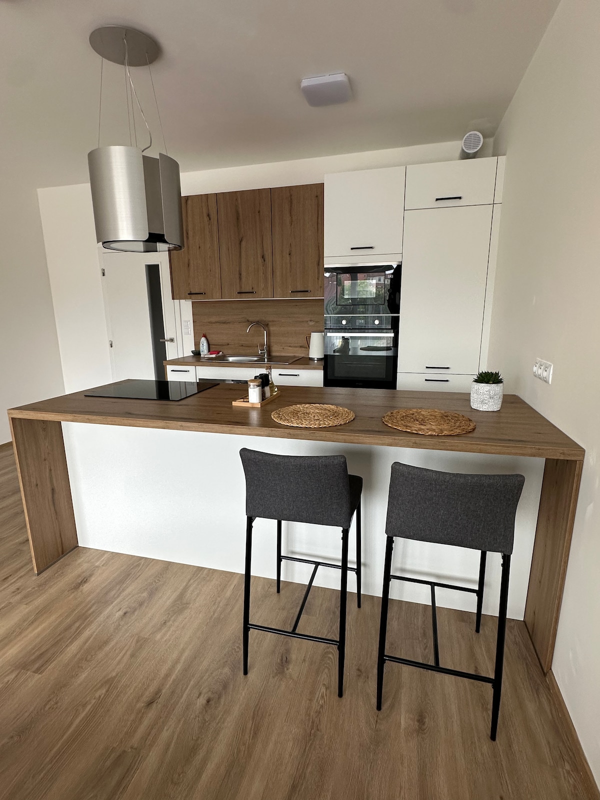 Moderní apartmán s terasou a infrasaunou v Bílovicích nad Svitavou Vítejte v našem stylovém apartmánu, kde se snoubí moderní design s klidem přírody. Užijte si naprosté soukromí v celém druhém patře novostavby. Interiér o rozloze 22 m² je navržen jako otevřený prostor s hřejivými dřevěnými prvky a plně vybavenou kuchyní. Hlavní přednosti: Dechberoucí výhled: Skutečným klenotem je prostorná terasa (20 m²), odkud můžete sledovat panorama okolních lesů a polí.