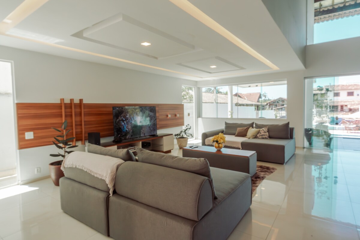 Frente a Ilha Grande (PATRIMONIO MUNDIAL DE LA UNESCO) - Casa con 5 dormitorios con aire acondicionado, 3 salas de estar, un balcón superior con mesa de cartas y hamaca, balcón inferior con barbacoa, terraza con piscina, vista a Ilha Grande desde todas las habitaciones, sauna, cancha de fútbol exclusiva, cocina completa. Situada en el condominio Portogalo, total seguridad y mucha privacidad, cuenta con TV por cable e internet wifi. ¡La playa de Cazuza está muy cerca de la casa y ofrece un maravilloso baño de mar!