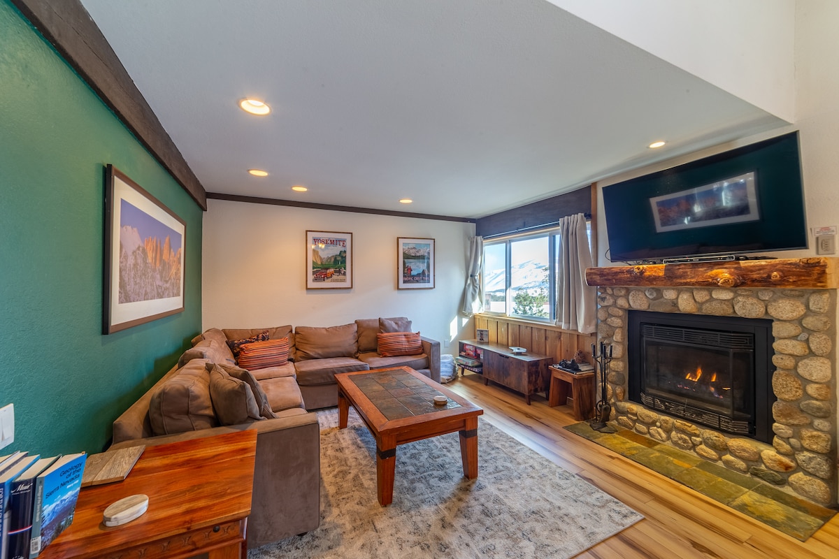 Increíbles vistas a la montaña Sherwin en este luminoso, espacioso, apto para mascotas y niños, 1 dormitorio más loft, 2 baños, apartamento moderno, decorado profesionalmente con un motivo rústico de montaña. Capacidad para 7 personas con una cocina moderna totalmente equipada con electrodomésticos de acero inoxidable nuevos, 3 televisores inteligentes 4K, Nintendo, chimenea de pellets y muebles rústicos modernos que te dan la sensación de una cabaña de montaña en un apartamento. Cerca de esquí, autobús, parque, carril bici, paseo de perros, restaurantes, pesca y golf. SE REQUIERE UNA TARIFA DE 69 USD POR MASCOTA DURANTE LA RESERVA SI TRAES UNA MASCOTA.