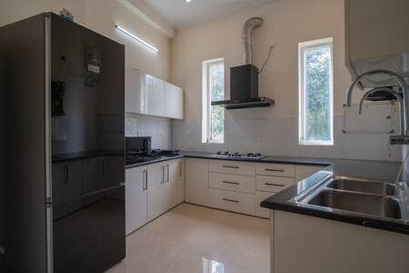 Tucked in lush Dehradun, this 3-BHK villa features a vibrant game zone with a pool table & offers easy access to Sahastradhara, Mussoorie, &Malsi Deer Park. Unwind in the manicured garden with a glass-roofed gazebo, or enjoy cosy movie nights in the private theatre with recliners & a bar. One bedroom opens to a private patio with a swing, while the rooftop terrace invites relaxation with rattan seating & views With open-plan living, a dining area, it’s ideal for long stays or laid-back getaways