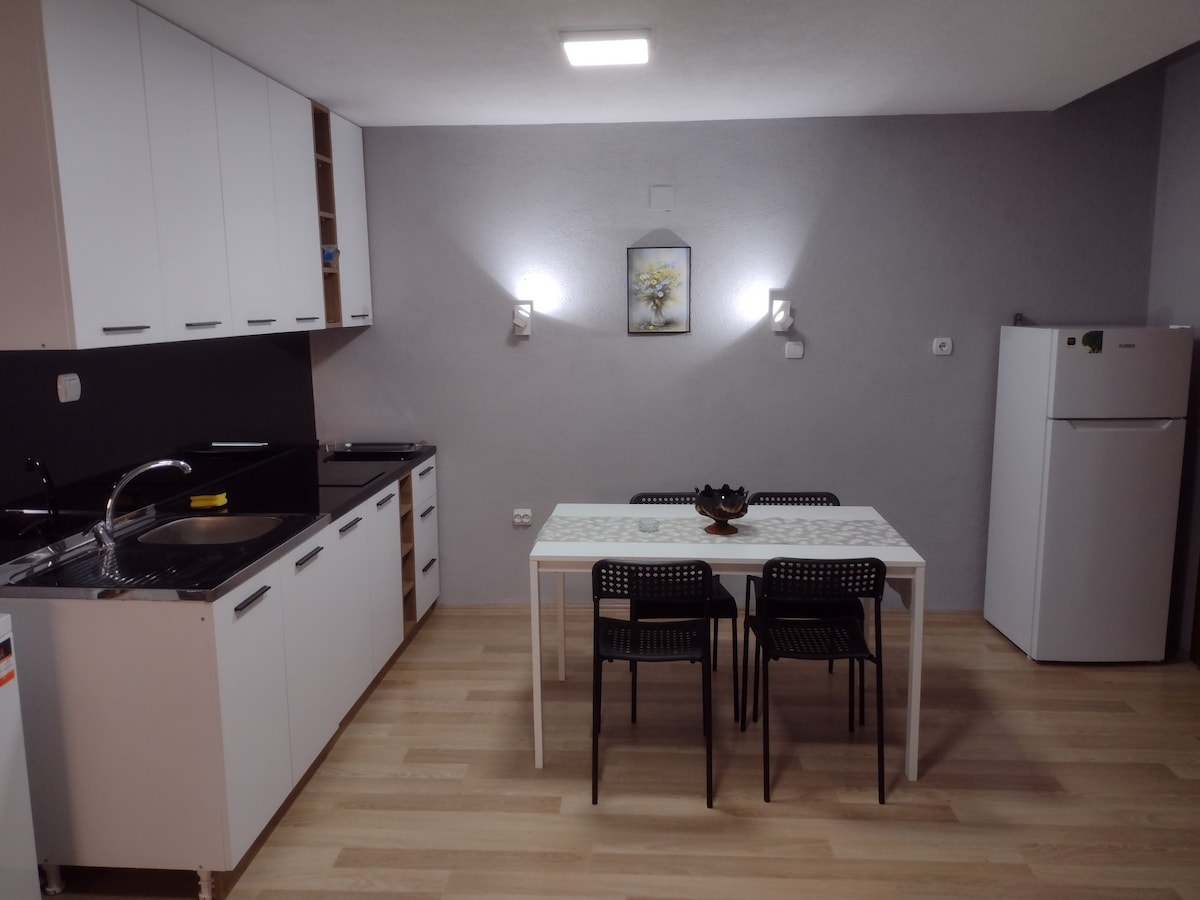 Es adecuado para familias y parejas que disfrutarían de Bitola. El apartamento es cómodo con un espacio de 90 m2 y completamente nuevo. Consta de 2 dormitorios, 2 baños, sala de estar, comedor y cocina. Existe la posibilidad de alojamiento para 5 personas. La suite está a 50 m de la Torre del Reloj y Shirok Sokak con entrada externa separada. El lugar es tranquilo y silencioso y está en un estricto centro de la ciudad.