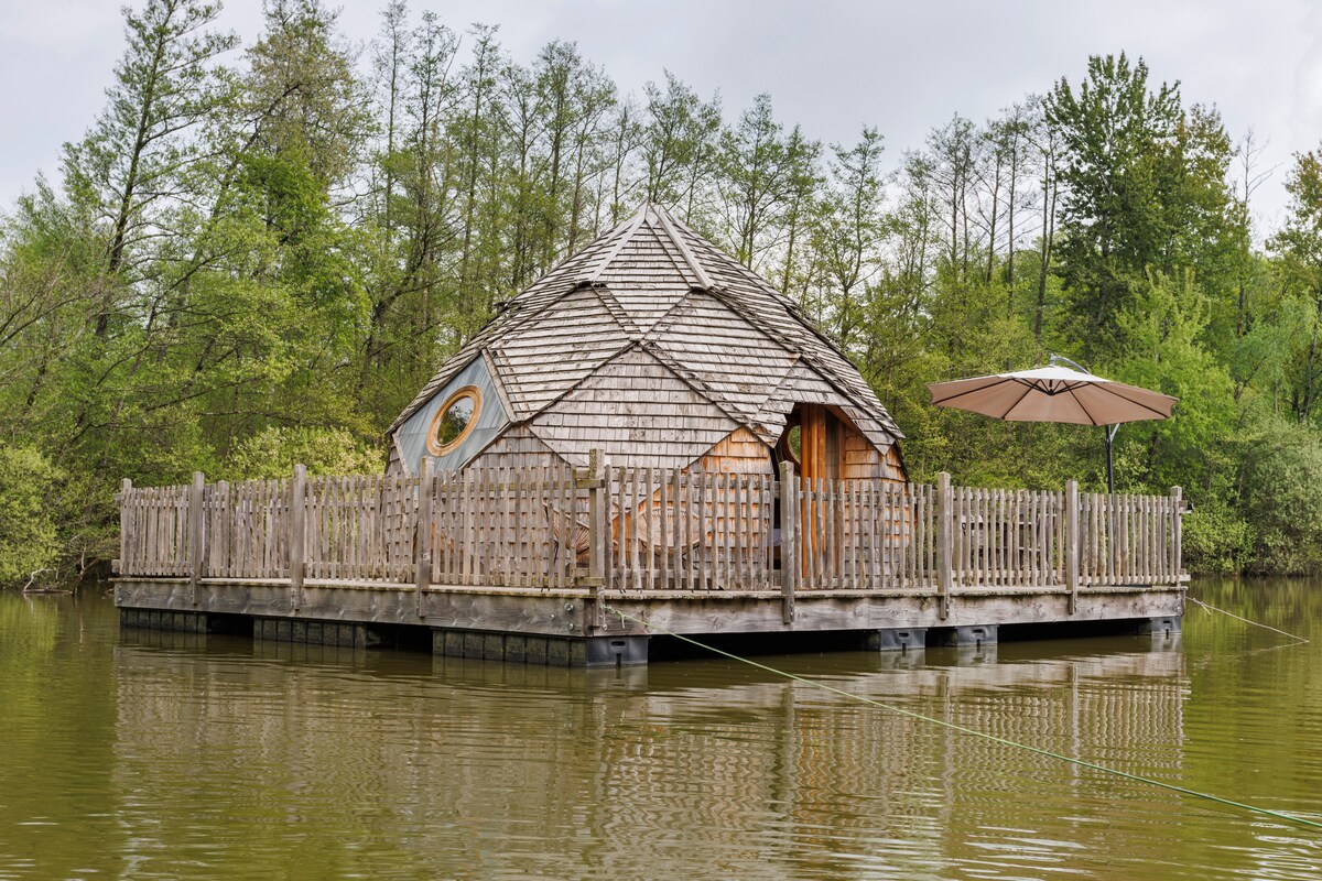 ¡La cabaña flotante Esmeralda es una de nuestras últimas creaciones! Con su forma única en “zome”, le invita a vivir una experiencia inolvidable en el corazón de la naturaleza de la finca Coucoo Grands Reflets.
