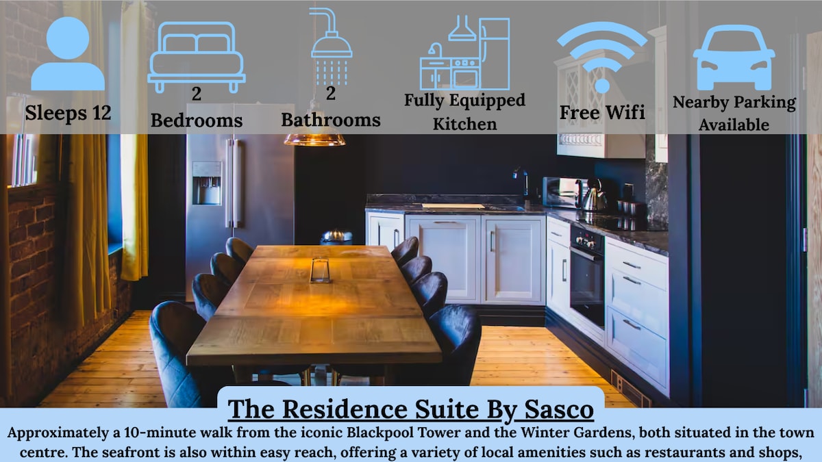 The Carousel Suite- First floor, newly refurbished gorgeous large 1 bedroom apartment, central location, right opposite the North Pier with stunning sea view. Large open plan kitchen, dining room lounge, with stunning sea view. You will be right in the middle of Blackpool town centre, 5 mins walk to the tower, winter gardens, grand theatre and local restaurants/bars/clubs all nearby.