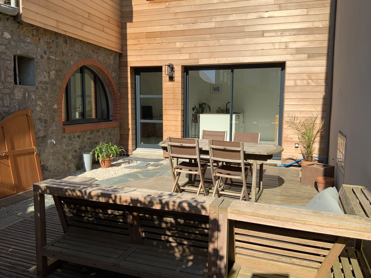 Encantadora casa de piedra, dúplex, en el corazón de un pueblo costero. Situada tranquila. Cerca de las tiendas y a 20 minutos a pie de las playas. Una zona de terraza cerrada con altos muros garantiza la privacidad y la relajación en un bonito jardín, rodeado en lo esencial por la vegetación. Barbacoa incluida. Lugar de veraneo ideal para familias con mascotas.