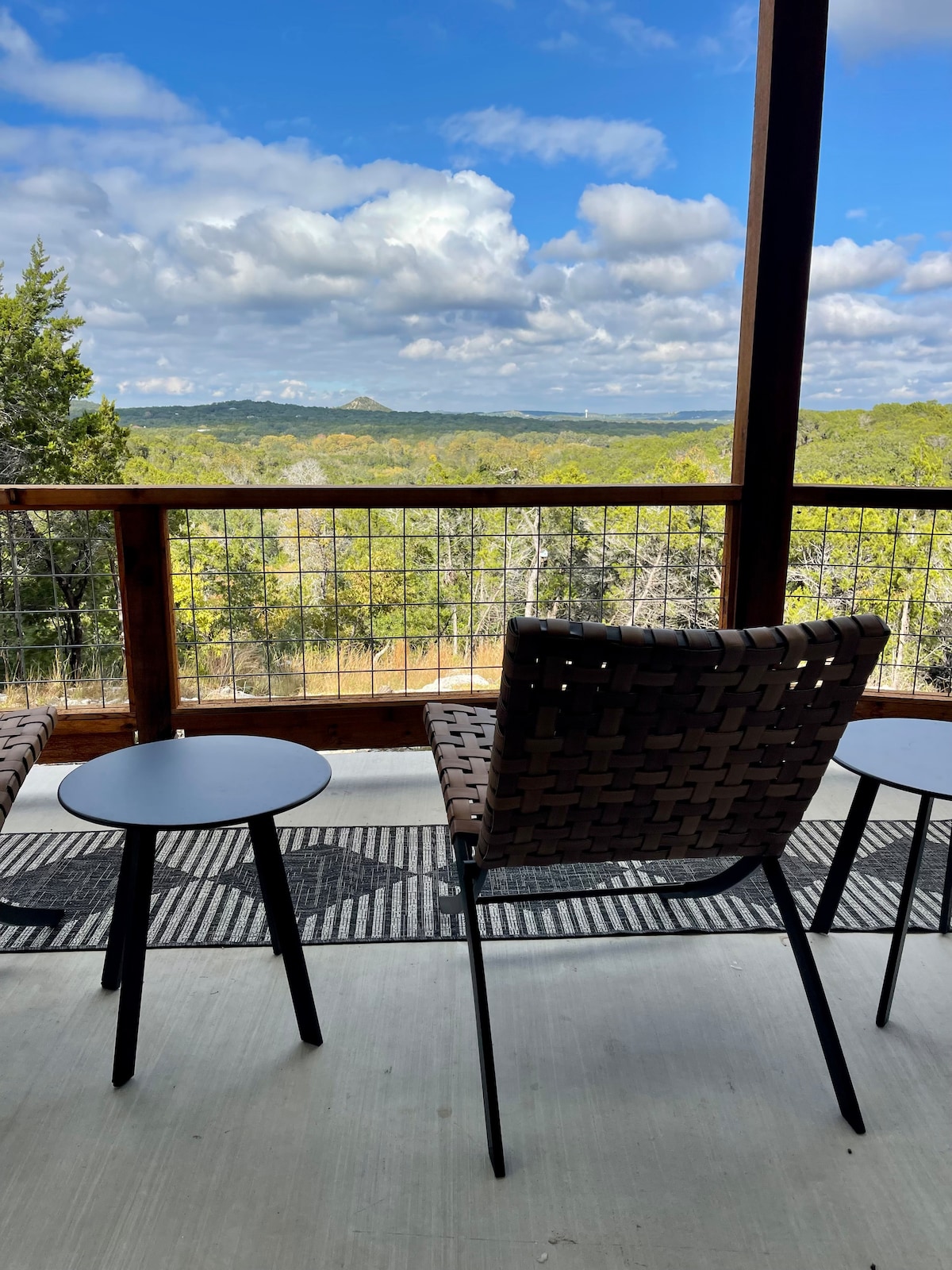 Perched high on a hill overlooking the gorgeous TX Hill Country sits the most stunning A-frame you ever did see. With a mix of mid-century style and artsy touches, this space is gorgeous. The cabin is tucked into a pocket of nature surrounded by 3 acres of oaks, elms, and junipers. The expansive front windows and raised deck provide and incredible sunset view across the hills and dark sky lighting sets the stage for breathtaking starry skies. The hot tub and outdoor shower is icing on the cake!