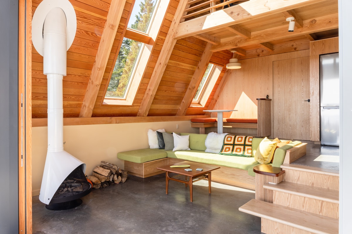 These unique and thoughtful suites, each of the three units are outfitted with subtle nuances giving the spaces their own special feel. Visitors will enjoy designer micro-kitchens, fully stocked with amenities any food enthusiast would appreciate. A cozy wood stove for those chillier evenings. All units have a special secondary sleeping nest area accessible by ladder. A serene place to hide away and watch for shooting stars through the skylight windows.