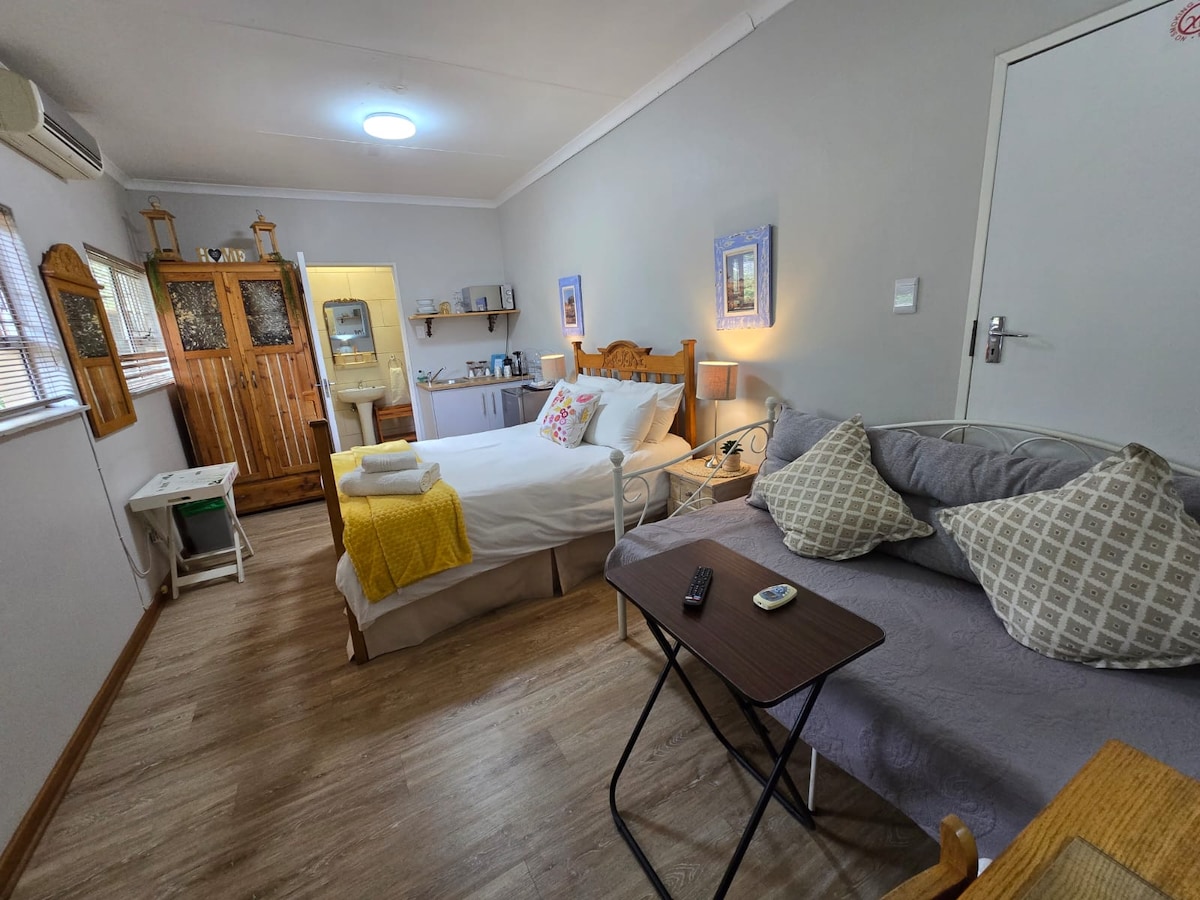 NEWLY RENOVATED, comfortable and well equipped accommodation for stop-overs with convenient amenities for longer stays. Close and easy access to the N1. Very friendly Afrikaans and English speaking hosts. Located in a peaceful cul-de-sac. Self-catering guest suite with fully equipped kitchen for stovetop cooking. Includes a shower in bathtub, Fibre Wi-Fi and Prime Video. Well-behaved pets are more than welcome on request.