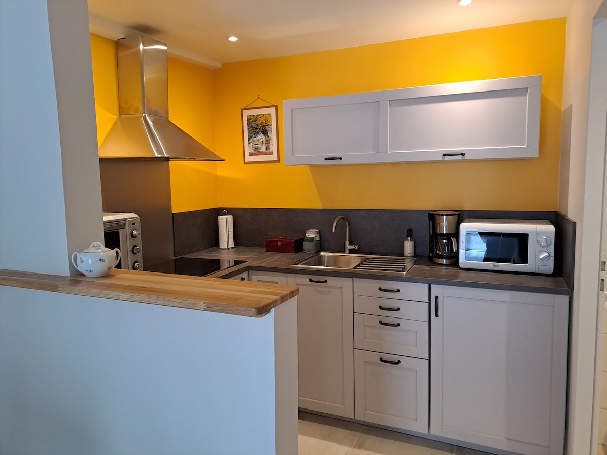 Encantador apartamento independiente Bienvenido a nuestro acogedor apartamento totalmente equipado, situado al final de nuestra gran casa. Disfrutará de una sala de estar con sofá cama, un amplio dormitorio, una cocina funcional y un baño con ducha. Ideal para una estancia tranquila, en plena naturaleza y a 10 minutos de los servicios y autopistas Si lo desea, puede disfrutar de los muebles de jardín y una mesa y sillas .
