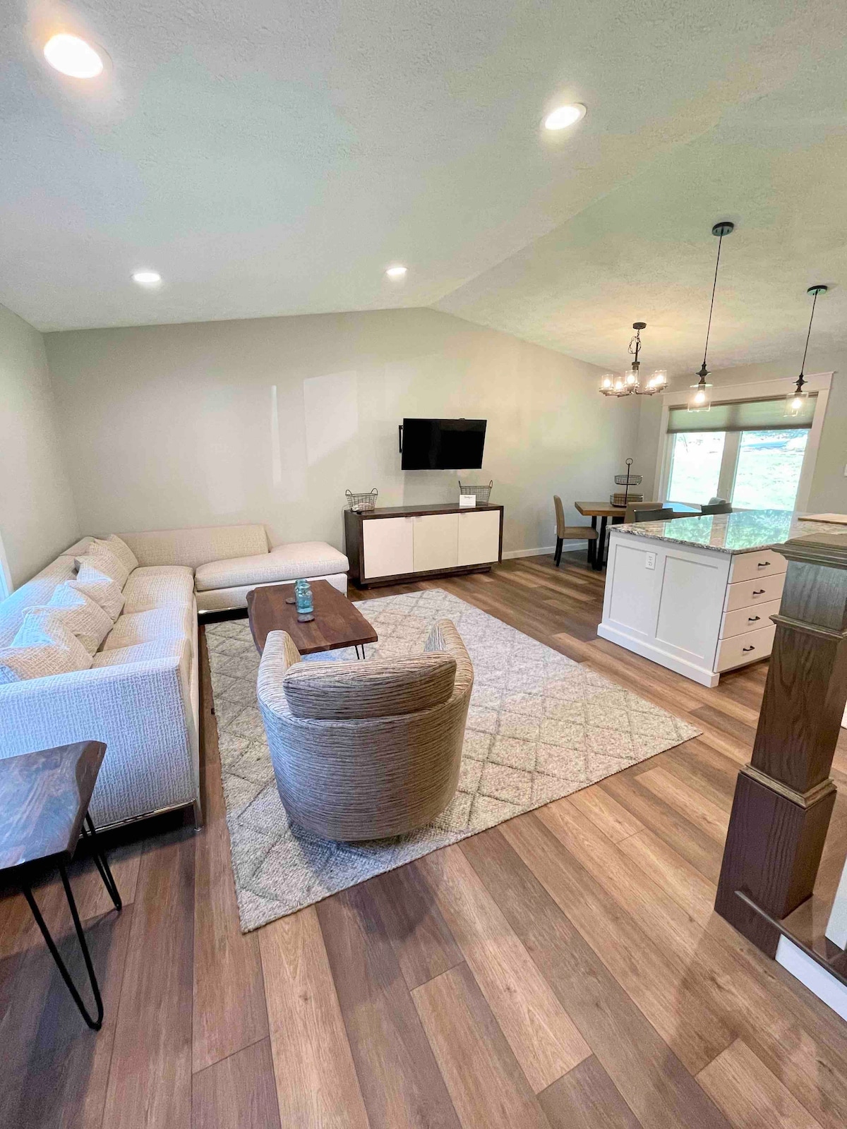 El Barndominium es un hermoso ejemplo de un apartamento de estilo loft industrial con un concepto abierto de techo alto que cuenta con una cocina completa/lavandería y baño privado situado en una zona privada que crea una sensación de estar rodeado de bosque, ¡a la vez que está cerca y es conveniente para IU y el lago Monroe! Visítenos en Instagram @btownbarndo