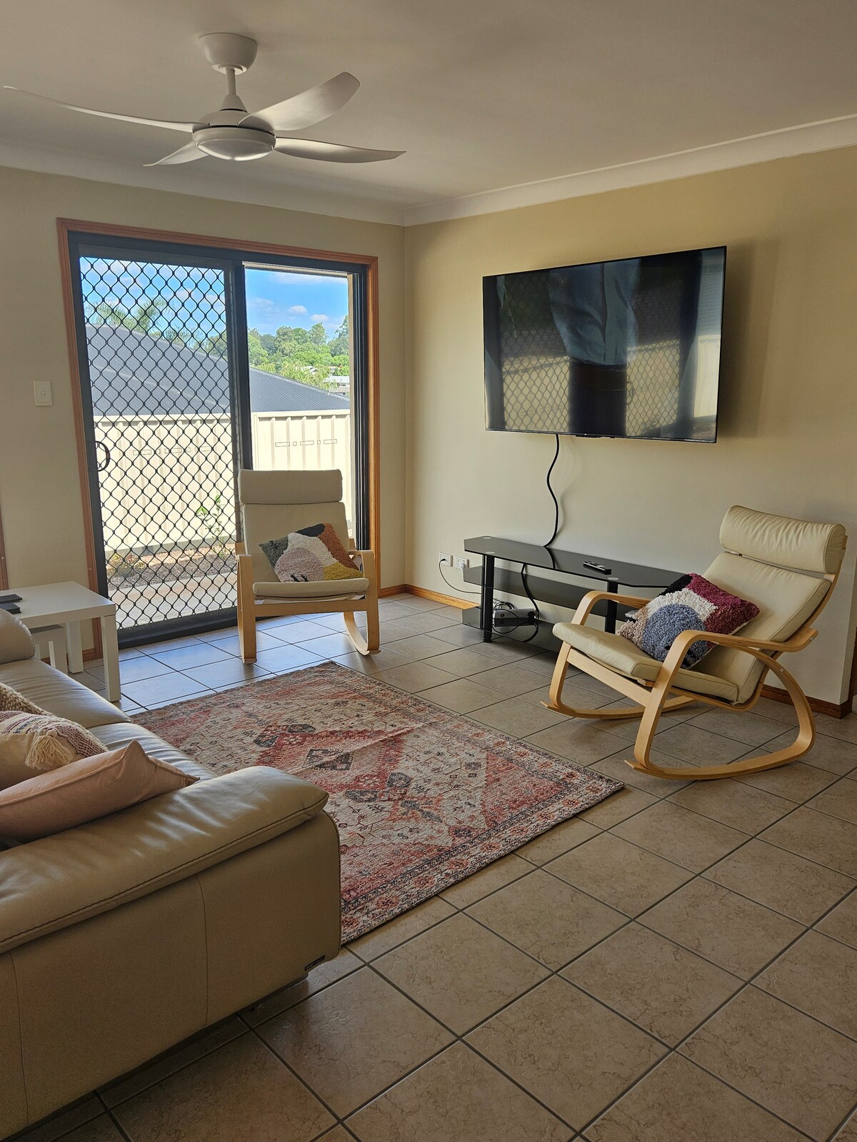 Nuestra casa es un apartamento de 3 dormitorios bellamente equipado a solo 20 metros de las puertas principales de Gabbinbar Homestead. Cuenta con acabados y muebles de lujo en todas partes, incluidos 3 dormitorios (equipados con ropa de cama de calidad hotelera), 2 baños espaciosos, cocina de tamaño completo, TV inteligente en cada dormitorio, lavandería totalmente equipada, aire acondicionado y patio amueblado. Ofrece una experiencia de alojamiento prémium para hasta 8 huéspedes.