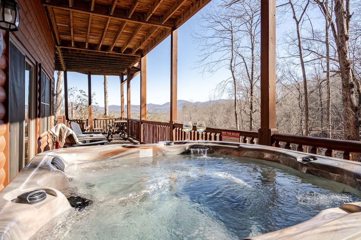 ¡VISTAS! ¡Cabaña con vistas a la montaña cerca de Ellijay con jacuzzi!