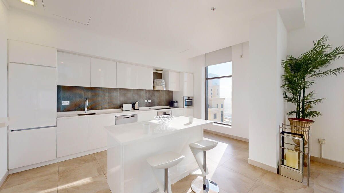 Tu sueño 2BHK rodeado por el Golfo Arábigo. Ubicada en la isla más emblemática de Dubai Blue Waters, la zona es un gran lugar de vacaciones para los huéspedes que buscan relajarse junto a la playa o como un viaje familiar con muchas opciones de entretenimiento y restaurantes en la zona, como Dubai Eye, la playa JBR y el Caesars Palace. El ambiente contemporáneo del departamento diseñado por nuestros diseñadores bien viajados hará de este el alojamiento perfecto durante tu estadía.