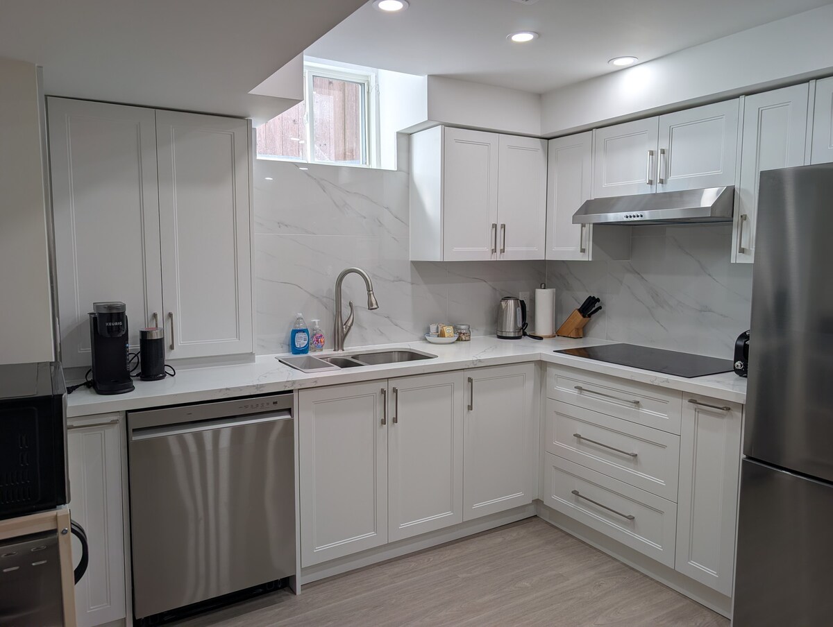 Disfruta de un apartamento de 1 dormitorio recién construido, diseñado profesionalmente y espacioso en el sótano en East York Toronto. Convenientemente ubicado cerca de Danforth, Woodbine Beach, parques y senderos, el apartamento está a un corto trayecto en autobús/metro o a 15 minutos en coche del centro de Toronto. Independiente y espacioso, ofrece una cocina totalmente equipada, nuevas instalaciones de lavandería, una cama tamaño queen, amplio espacio de almacenamiento y mucha luz natural.