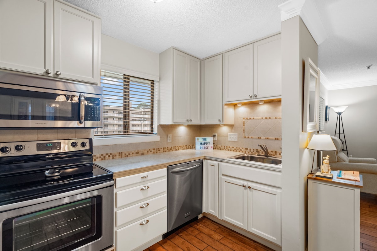 ¡Recién remodelado! Precioso condominio frente a la playa ubicado en HH Beach & Tennis Resort. ¡Observa y escucha las olas del océano desde tu balcón del segundo piso! El apartamento se encuentra en una zona cerrada donde los huéspedes tendrán acceso a una playa privada, 2 piscinas, restaurantes del resort, tenis, pickleball, voleibol de playa, parques infantiles, áreas de cocina, alquiler de bicicletas y un gimnasio. ¡También ofrecemos sillas de playa, neveras, tablas de boogie y café! ¡Todo está aquí! ¡La escapada que estabas esperando y que te mereces! 💕
