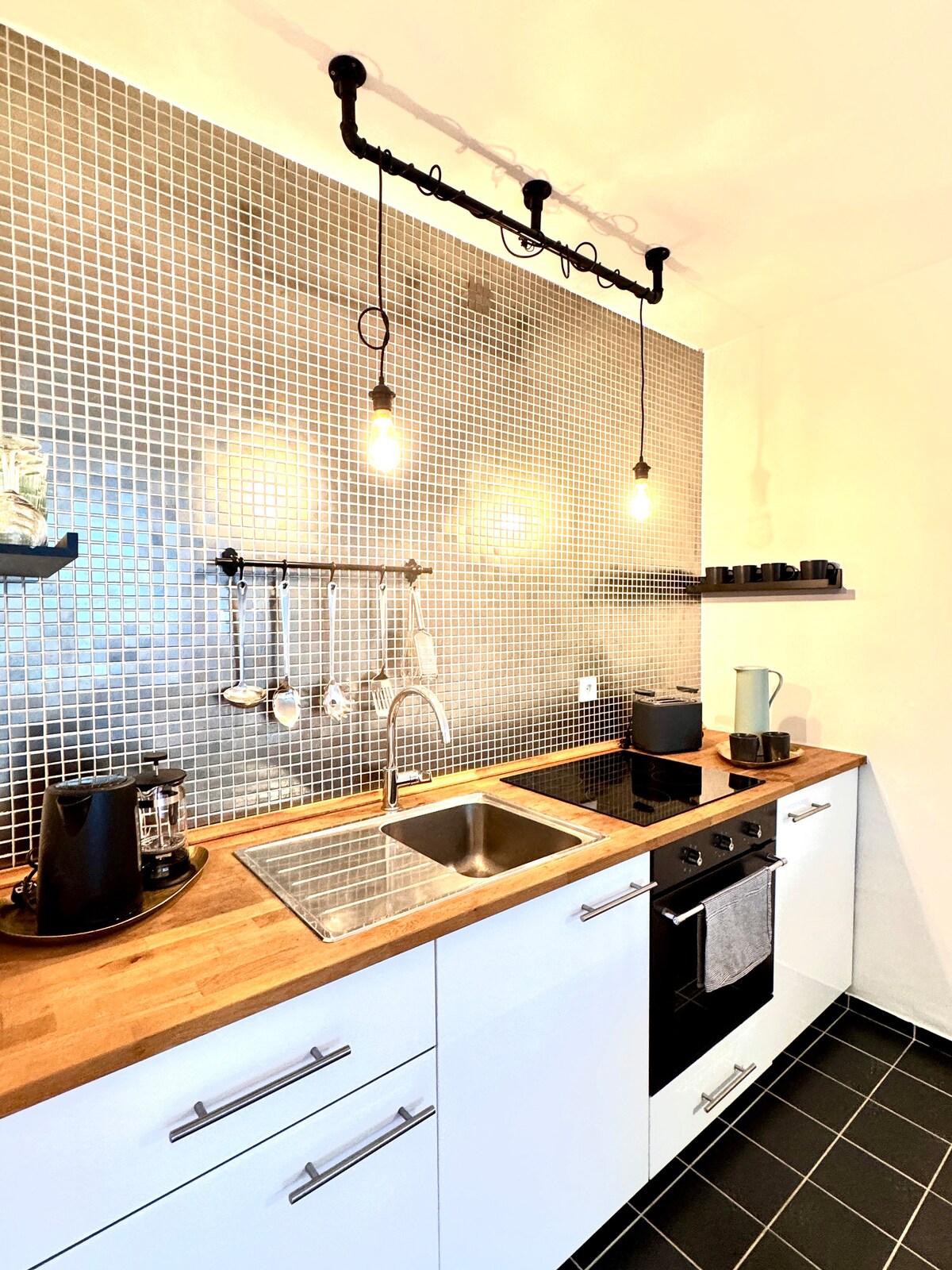 Loft moderno, acogedor y luminoso de 65 m² en una ubicación céntrica. El loft se divide en una amplia sala de estar que consta de un sofá acogedor, área de TV, una habitación grande con cocina abierta y una acogedora zona para dormir separada. Otro punto a destacar es el baño de lujo. Se puede llegar al centro de la ciudad a pie en menos de 1 minuto. A pesar de su ubicación céntrica, muy tranquilo, incluidas las vistas panorámicas de Kassel. Conexiones de tren/autobús justo fuera de la puerta