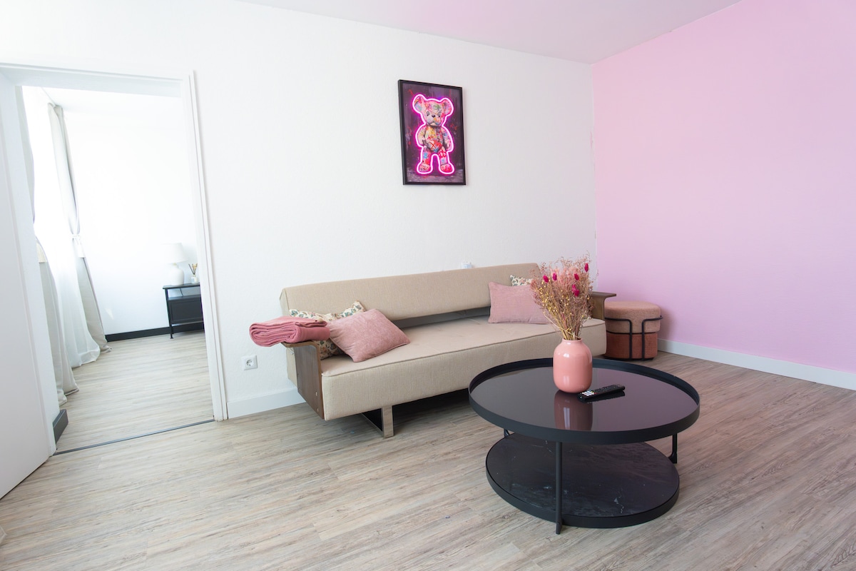 Este alojamiento especial está cerca de todos los elementos esenciales, lo que facilita la planificación de tu estancia. Desde la estación de tren ICE a 10 minutos en tranvía hasta el apartamento. Puedes aparcar fácilmente tu coche en una plaza de aparcamiento separada, incluida en el precio. En el acogedor dormitorio hay una cama incorporada de 200 x 160 cm. La cama es ligeramente más alta (tamaño especial). En la sala de estar hay un nuevo sofá cama de diseño de 200 x 120. La cocina está recién equipada. ¡Buena estancia!