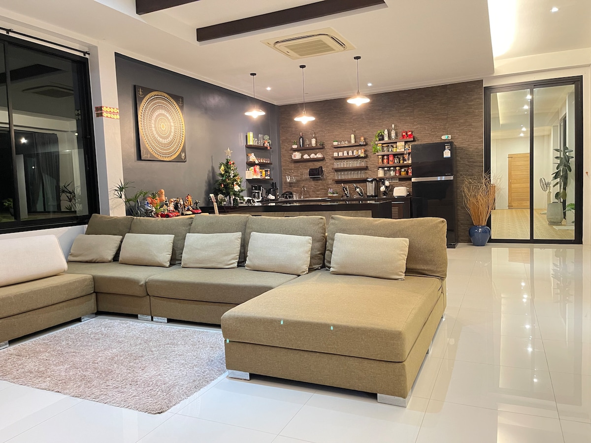 ¡Bienvenido a nuestro pequeño pedazo de paraíso en Phuket! Estoy muy emocionado de compartir este exclusivo complejo de villas con piscina contigo. Un escape verdaderamente tranquilo, espacioso y rejuvenecedor con tu familia y amigos. Hay mucho espacio abierto para tomar ese precioso aire fresco y disfrutar del sol. Ofrecemos transporte gratuito a la tranquila playa de Mai Khao. Dentro del complejo, tenemos una enorme piscina comunitaria que llega a todas las casas. Disfruta de una tranquilidad total con nuestro servicio de seguridad profesional las 24 horas. 英语,中文,泰语服务.