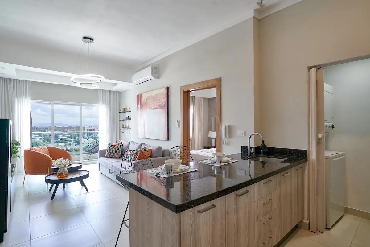 The apartment is located in Regatta Living, a new modern tower in the heart of Piantini with social area on the top floor, facilities such as: restaurant, bar, pool, 2 jacuzzi, gym and business center. Come and enjoy our fully equipped luxury one-bedroom apartment with WiFi, Smart TV, Kitchen, Laundry area, and more.