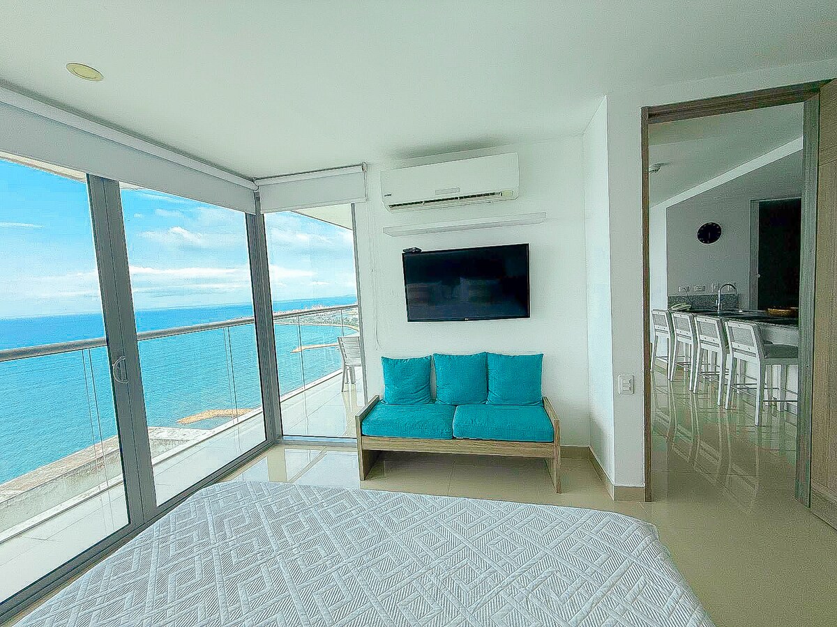 -Hermosa vista al mar y a la ciudad amurallada -Totalmente equipado -100% seguro -Alcoba + sala + balcón -2 baños con ducha independiente (agua caliente) -A/C en todos los espacios -WiFi -2 TVs 4K -Vuelo tarde/temprano? Almacenamos equipaje -razonable- gratis (solicitar con anticipo) -Piscina y Jacuzzi -Lavadora -Acceso directo a la playa -Parqueo gratis -Seguridad 24/7 -Colchón/Almohadas/Sábanas/Toallas constantemente desinfectados -Si no sabes nada de Cartagena, déjame guiarte !