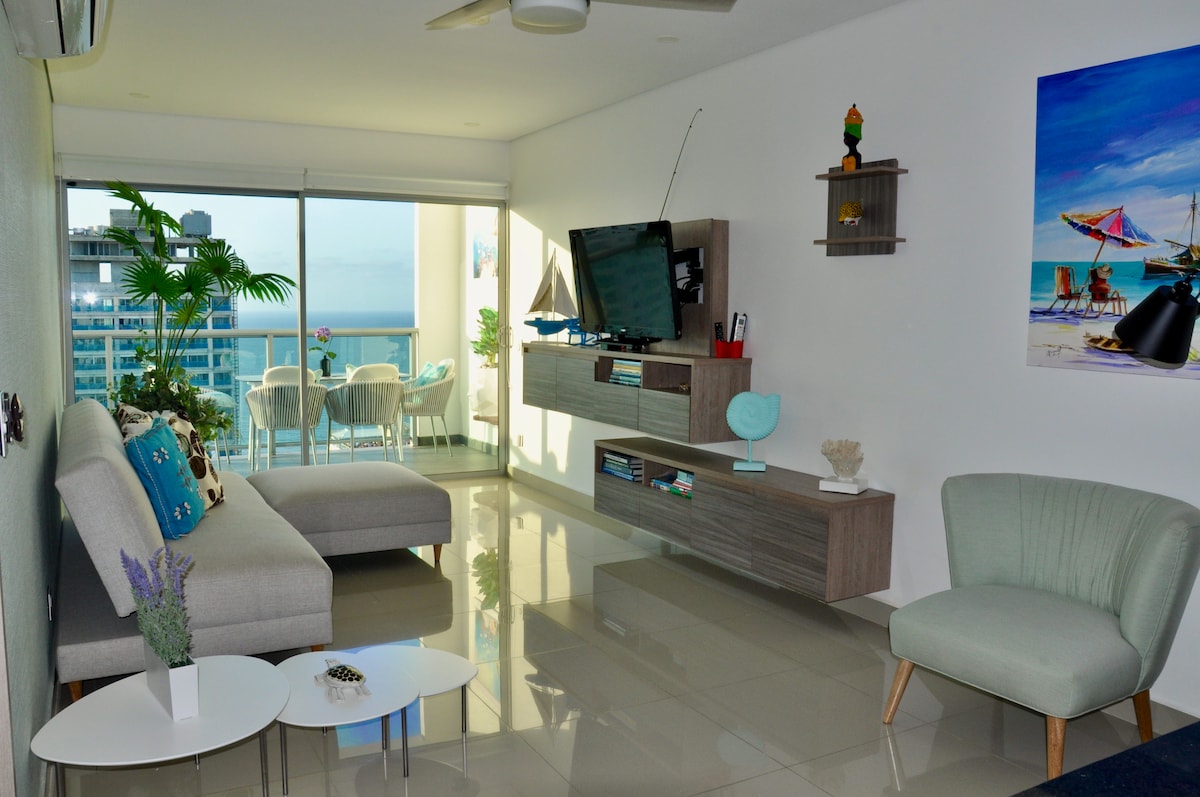 Acogedor apartamento 2/2 en primera línea de playa en Bocagrande, cerca de la ciudad amurallada