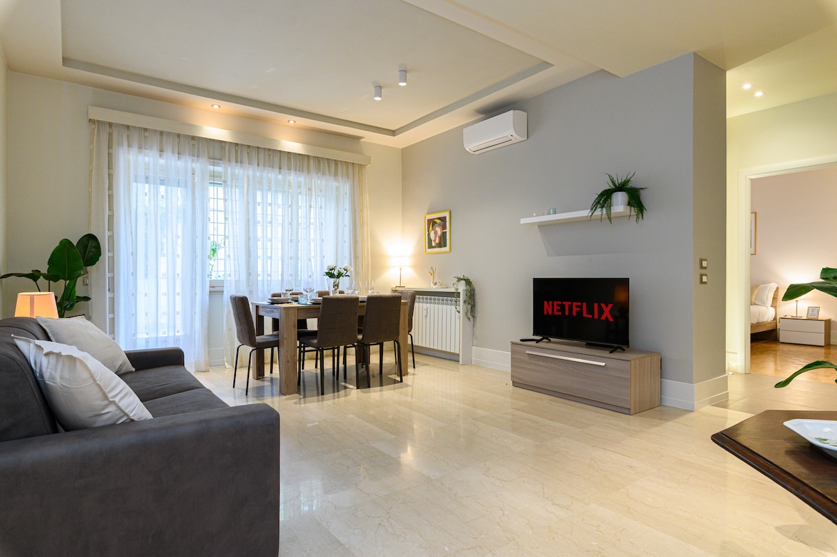 Vive una experiencia relajante en esta propiedad ubicada en el primer piso de un condominio privado y tranquilo El apartamento cuenta con calefacción y aire acondicionado independientes. La casa tiene un dormitorio doble y un sofá cama, perfecto para parejas o grupos de tres personas. El barrio es tranquilo con excelentes restaurantes, pizzerías y, a solo 50 metros de distancia, un horno con un aperitivo nocturno. La parada de transporte público conectada al metro A Battistini está a 100 m.