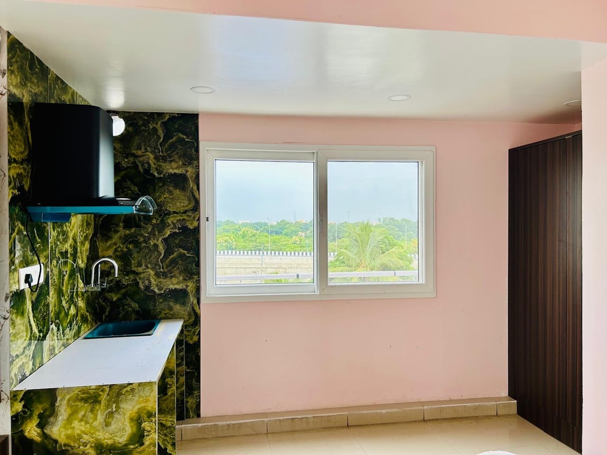 🏩 Un apartamento totalmente amueblado con aire acondicionado BHK con todas las comodidades modernas. A 🛕 1,5 km del templo Mahabodhi 💎 Dormitorio + Sala de estar + Cocina modular + baño 💎 Privacidad y estilo de vida en tu departamento 💎 Dos camas individuales + dos camas sofás cama 💎 Colchones, cortinas, almohadas, colchas y mantas de primera calidad. 💎 Wifi de alta velocidad y respaldo de energía 💎 Complejo cerrado con seguridad las 24 horas 💎 TV, nevera, RO, microondas, estufa, lavadora, géiser 💎 Una plaza de aparcamiento abierta en la calle cerca de la propiedad